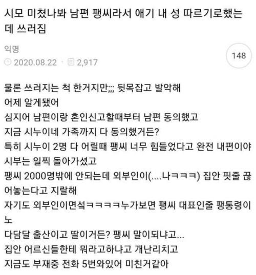 성이야 팽씨가 점 그러니 어머니쪽 성 따른다는건 이해가가는데 글에서 인성이 너무 보이네