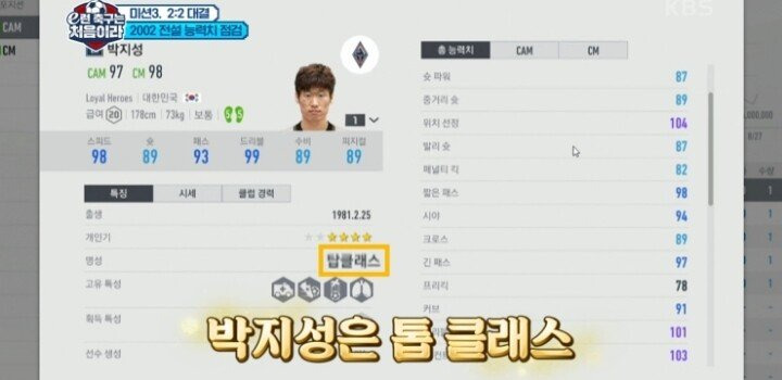 [유머] 2002년 월드컵 대표 선수들 능력치 평가