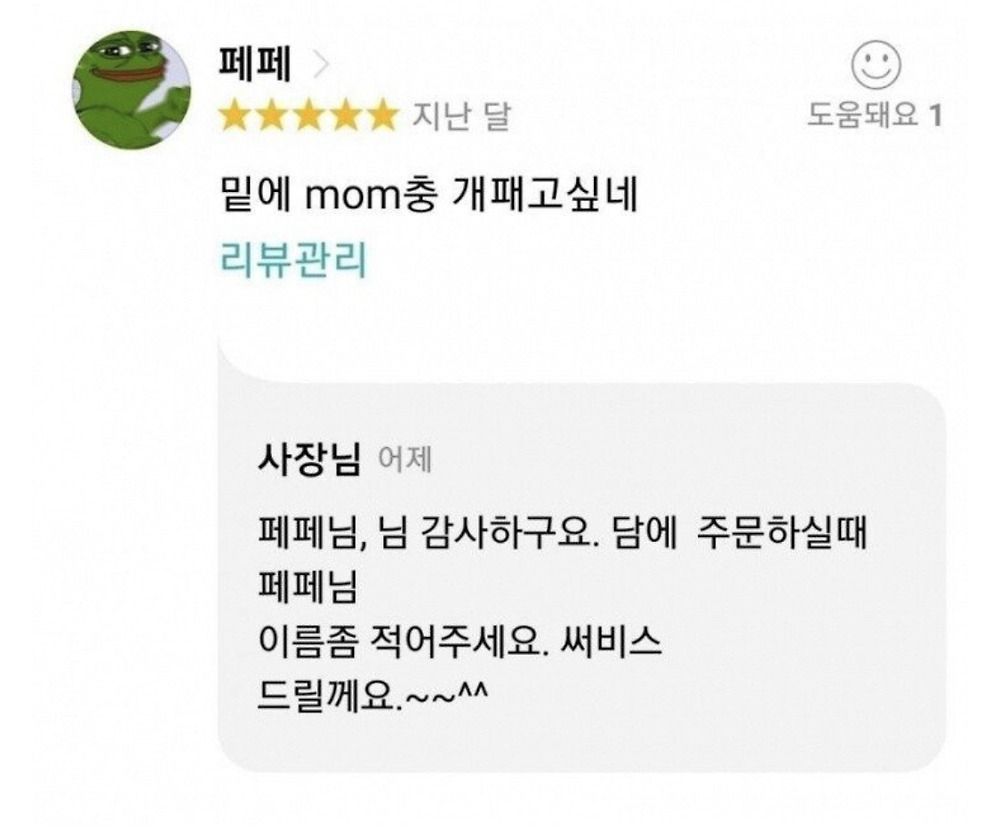 단골이 리뷰로 커버쳐줄때 존나 고마움 진짜ㅋㅋ