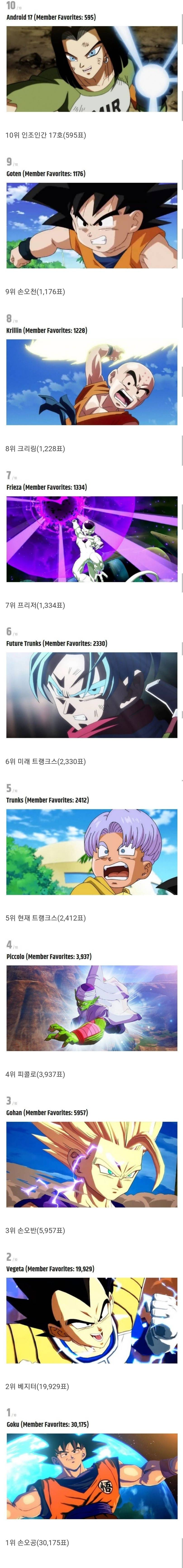 [유머] 드래곤볼) 최근 서양 커뮤에서 조사한 인기 캐릭터 순위