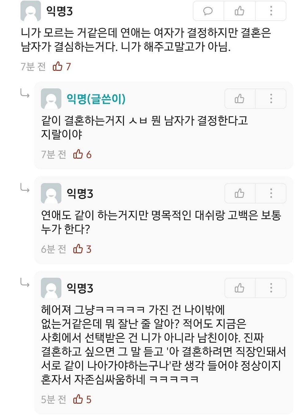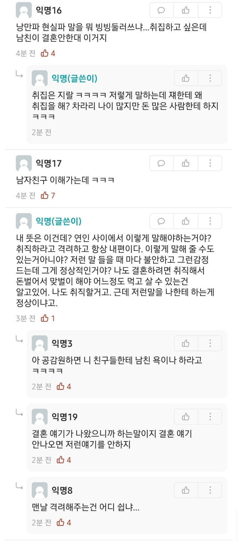 돈을 벌어야 가정을 차리지 무작정 결혼하면 뭐하누..