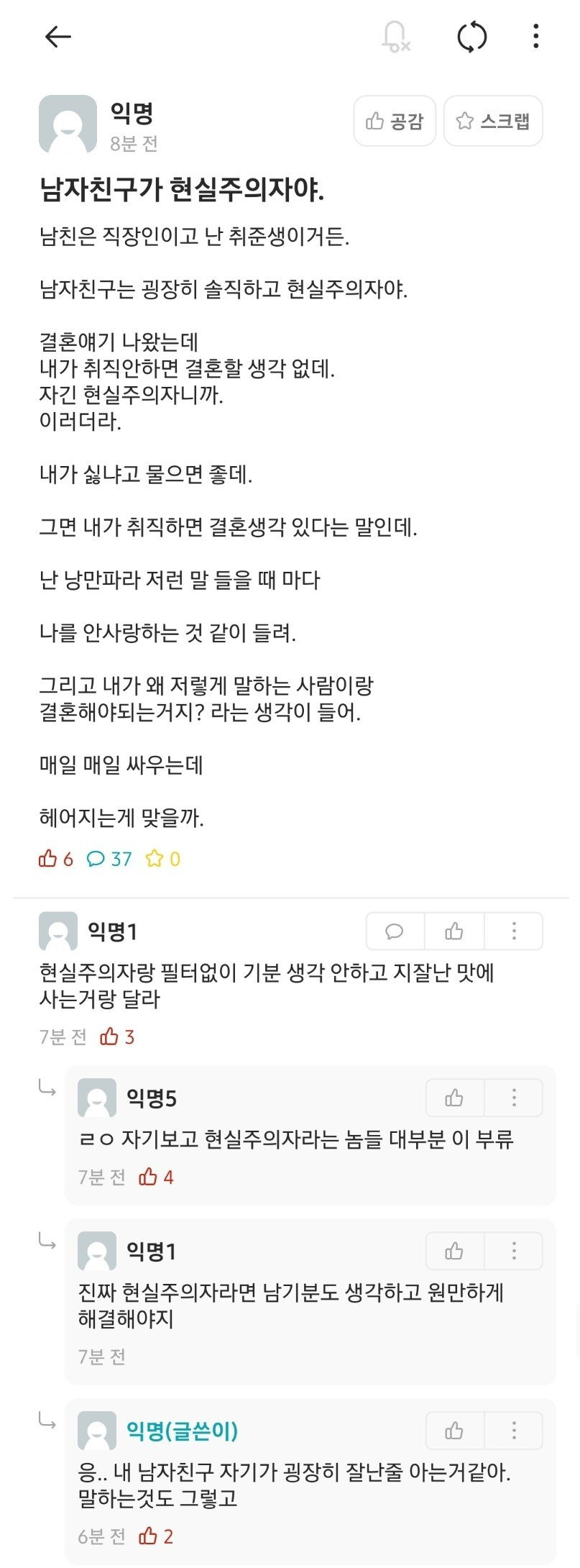 본문만 보면 그냥 헤어지면 끝날거같네 '매일매일 싸워' '안 사랑하는 것 같이 들려' 피스는 다 모였구만 퍼즐완성!