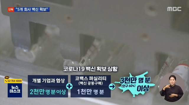 개별 제약사와 선구매 계약을 통해 확보하는 물량은 약 3400만명분이다. 아스트라제네카 2000만회분, 화이자 2000만회분, 존슨앤드존슨의 제약부문 계열사 얀센에서 400만회분, 모더나 2000만회분이다. 얀센은 1회, 나머지는 2회 접종하게 된다.