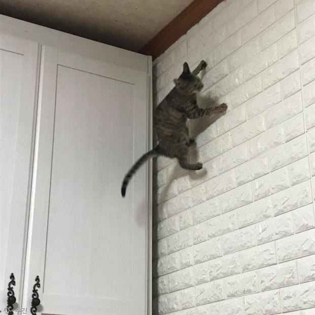 [유머] 벽지를 바꾼 이후 고양이가 하는 짓