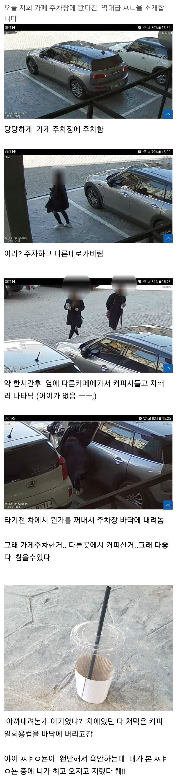우리 가게 앞에다 주차해놓고 옆가게 들어가는 개씨발 새끼들 꽤 있음 진짜 무슨 생각으로 사는지 이해할 수가 없다