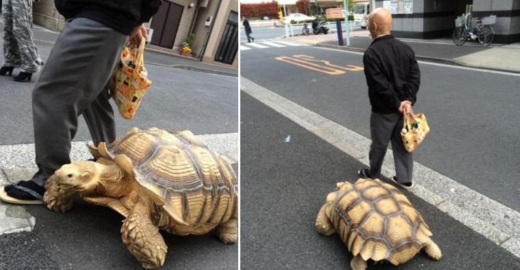 [유머] 20년 사육한 육지 거북이와 산책중인 아저씨