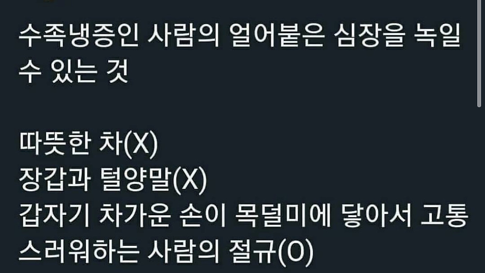 [유머] 수족냉증인 사람의 심장을 녹일수있는 유일한것