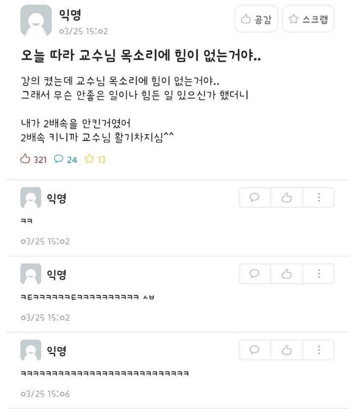 [유머] 힘이 없던 교수님의 목소리