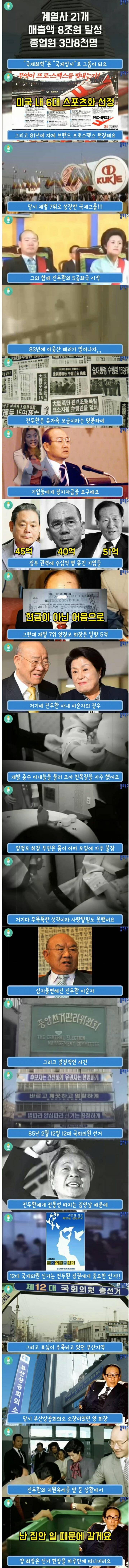 저도 해체길래 어린 마음에 그런갑다했는데.. 와 이런 일이 있었네;; 전두한 개쉬키 ㅡㅡ; 기업에 대체 얼마나 피빨아 먹은겨 꼴보니 앵간한 기업들은 다 받쳤겠네