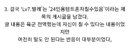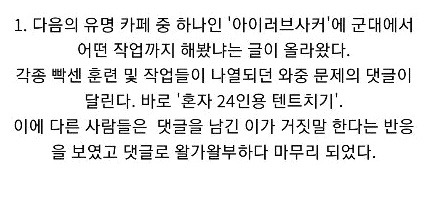 저거 할때 입영일자 정해진 시기여서 엄청 관심깊게봤었음. 결과 13년 2월에 입대할때까지 군대라는 곳에 환상이 생겼는데 입대날이 되니까 거짓말같이 사라짐...