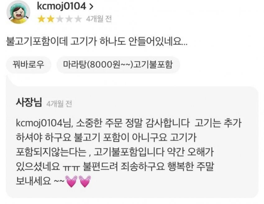 그냥 고기없음 으로 했어야 ㅋㅋ