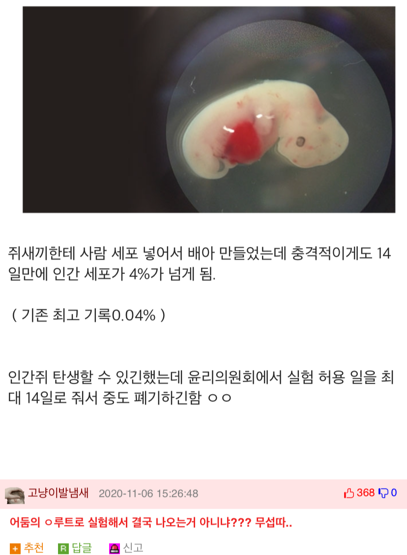 생김세는 쥐세끼인데 세포만 사람거랑유사한 징그러운게나오겠지