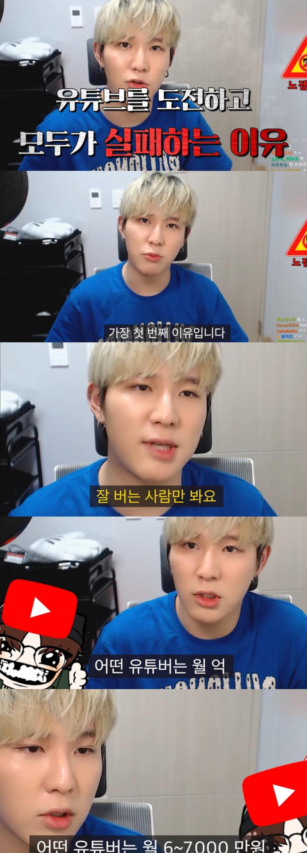 유튜버도 사업이나 다름없잖음. 방송 기재, 좋은 컴퓨터 등등 비싼돈 주고 준비해도 내가 뭘 할까 준비도 안하고 프로그램, 컨셉, 시청자 유도 등등 진짜 중요한걸 생각에서 빼둔다면 그냥 쫄딱 망할 수 밖에...