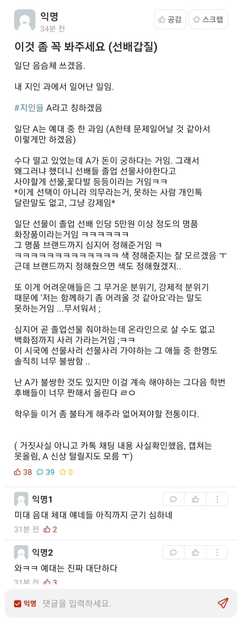 [유머] 부산대 에타 선배갑질 폭로 뜸