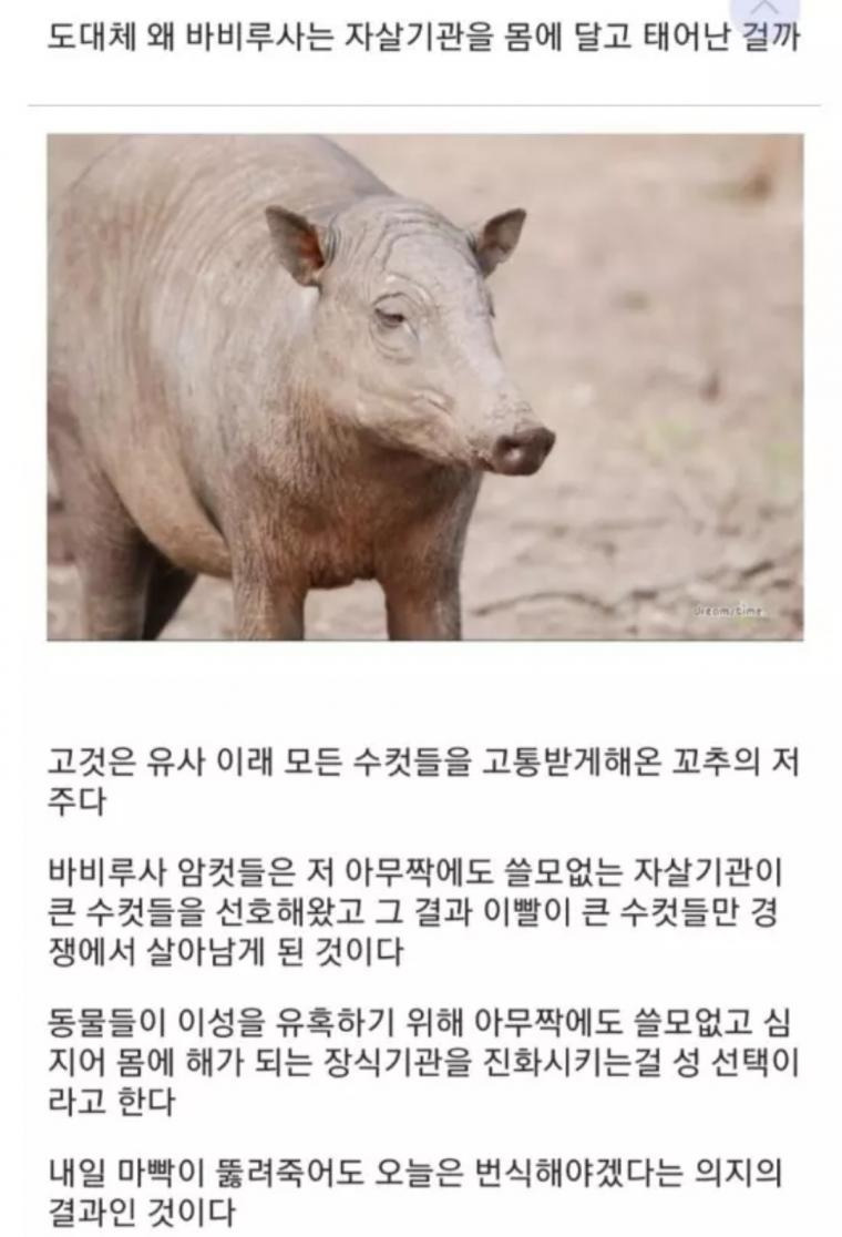 그러니깐 암컷의 선택 때문에 진화된거네. 다윈의 자연선택의 진화네.. 암컷이 좋아하는 녀석이 살아남아서..숫컷은 ㅋㅋ