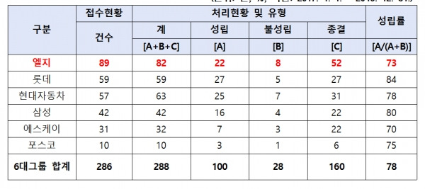 분쟁이 가장 많이 발생한 그룹은 LG그룹.