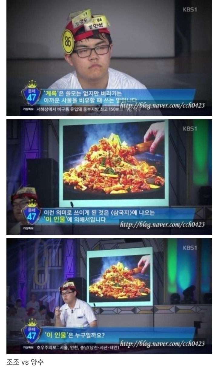 닭갈비 뜯고 있던건 조조고 알아차린건 양수인데... 원인제공은 조조가 한거니까 조조 아님?