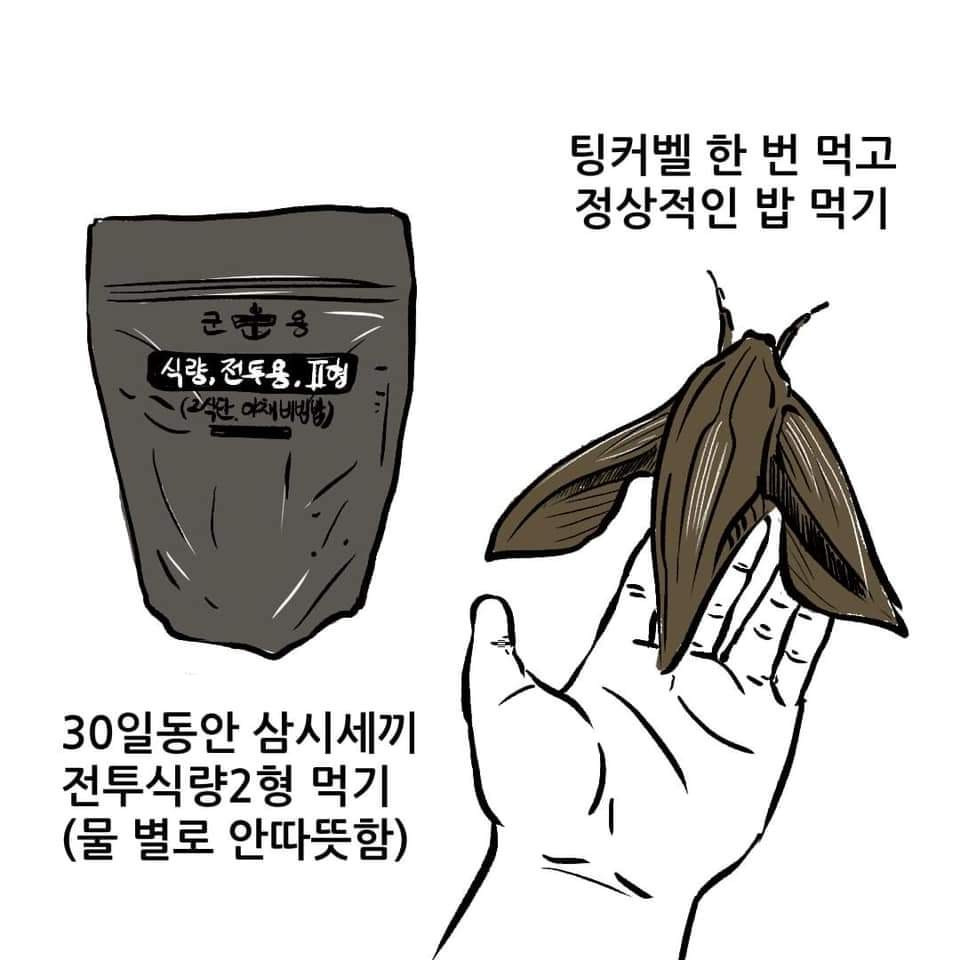 날로는 도저히 못 먹겠따... 밀웜이라면 먹는데 나방은 오바잖어..