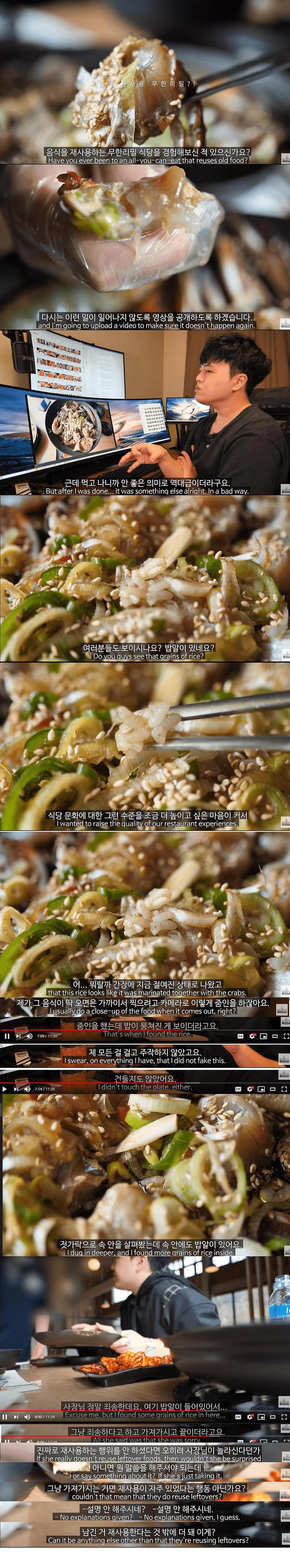 리필을 새 음식에 먹던 음식을 합쳐서 리필해주는데 저 유튜버가 먹다 흘린 밥알이 섞임 근데 종업원인지 누군지 모르겠지만 초기 대응이 어설펐고 유튜버는 나중에 확인하고 정정방송인지 뭔지 하고 사과했다고는 하는거같은데 결론적으로는 저 음식점은 이미 음식 재사용하는 식당이 되서 이미지 씹창나고 폐업했다고 함