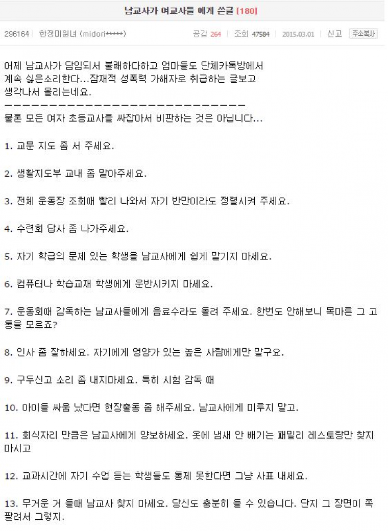 여교사가 아니라 그냥 여자의 문제군