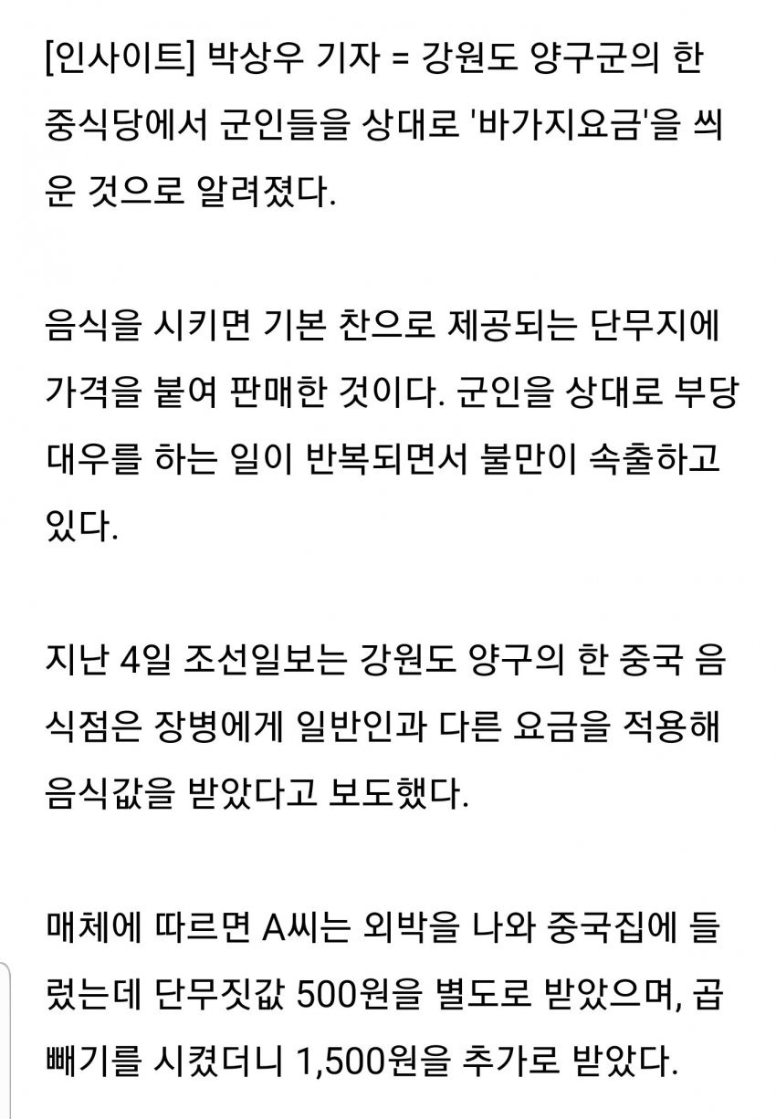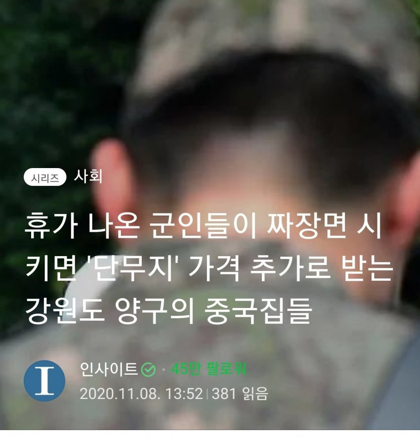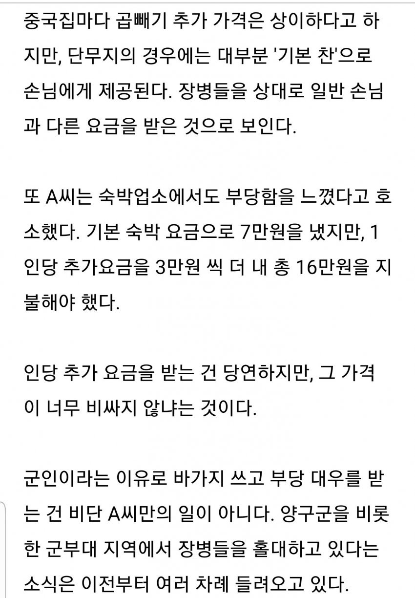 난 강원도 어디 부대 근처였는데 출장가서 나포함3명이서 짱개집서 시켜먹는데 시바 메뉴고르고있는데 세명이서 메뉴 다 틀리게 고르니까 메뉴 통일하라고 하더라 주인아주매미가ㅡㅡ얼척없던데 ㅅㅂ