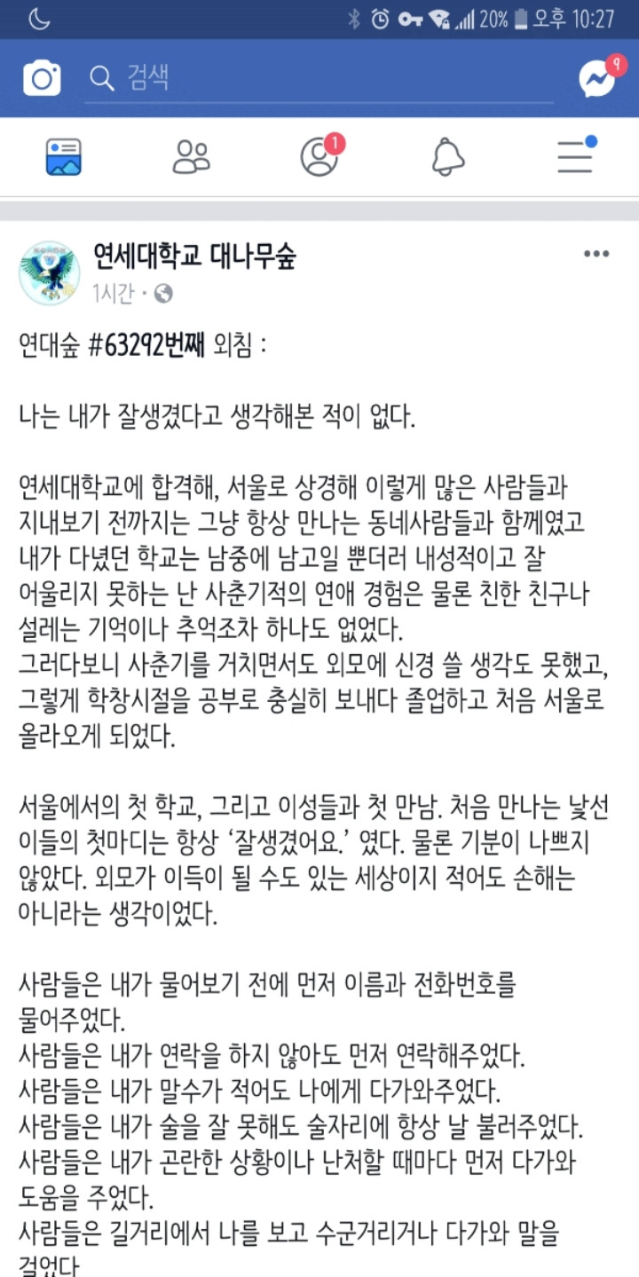 ㅋㅋ 잘생겼다고 부르는 주변사람이 그 모임에 안나가니까 뒷담까고 하는건 걔네 열등감이 맞는데, 못생긴거보단 잘생긴게 사회적인 이점이 존나게 많음... 외모가 돋보여서 정 힘들면 안경끼고 마스크 쓰고 머리 감지 말고 다녀보길.