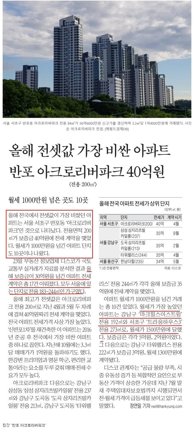 [유머] 우리나라에서 전셋값 가장 비싼 아파트