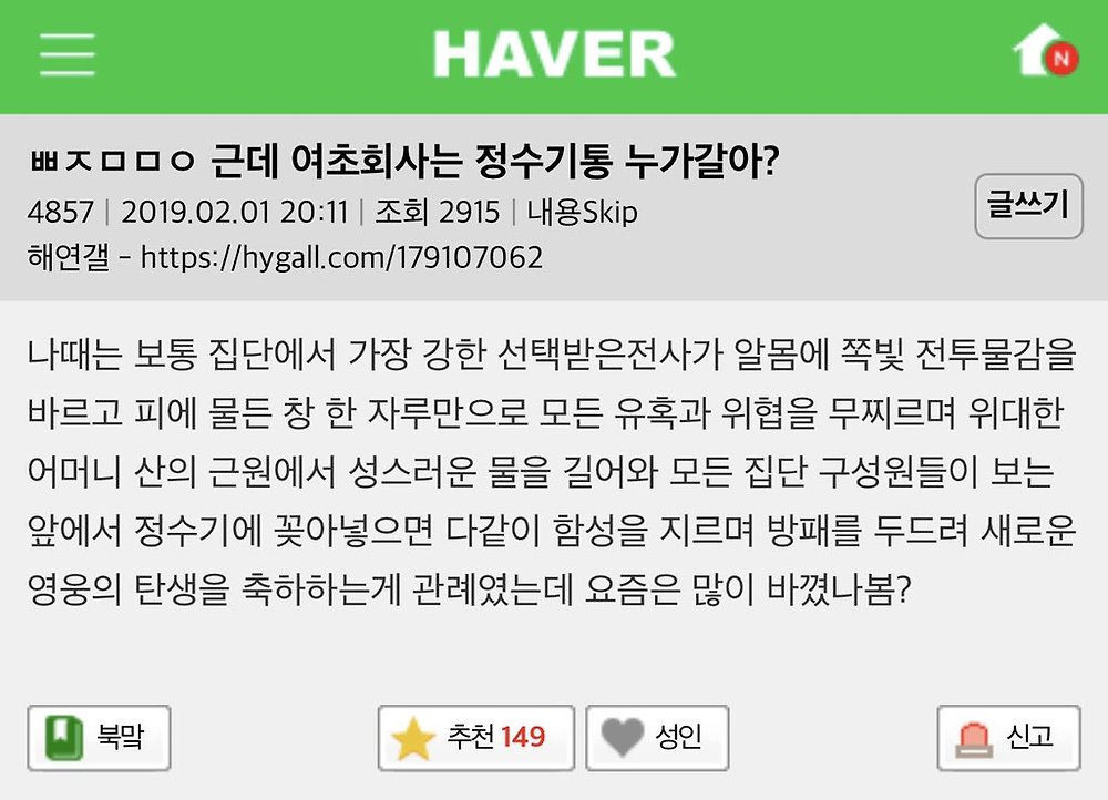 [유머] 근데 여초회사는 정수기통 누가 갈아?