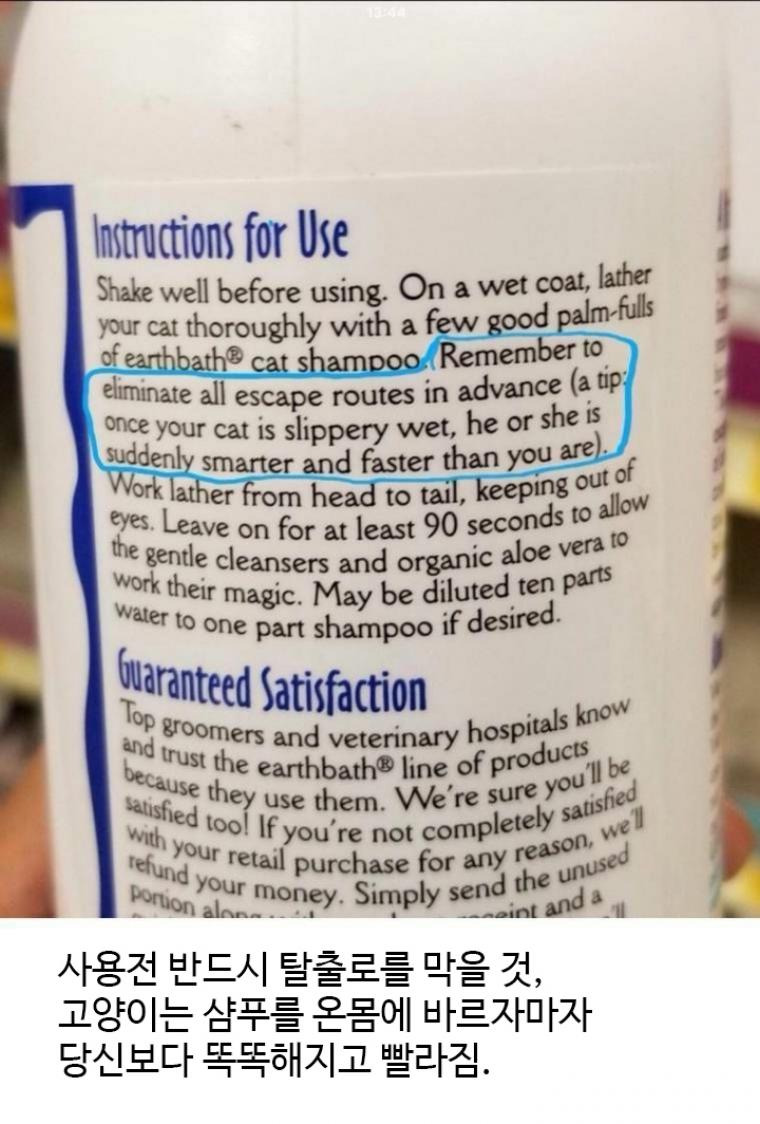 [유머] 고양이 샴푸 사용시 주의사항