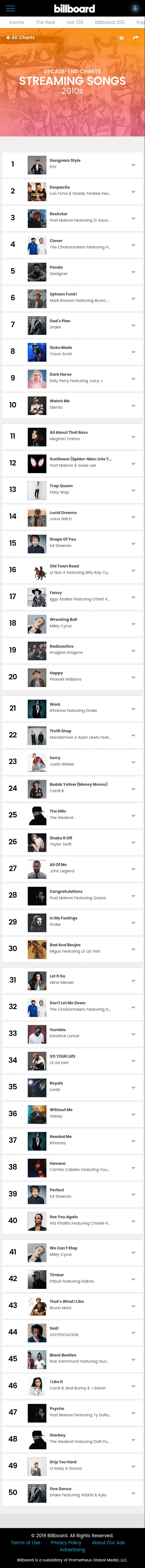 [유머] 지난 10년간 전세계 음원 1위곡