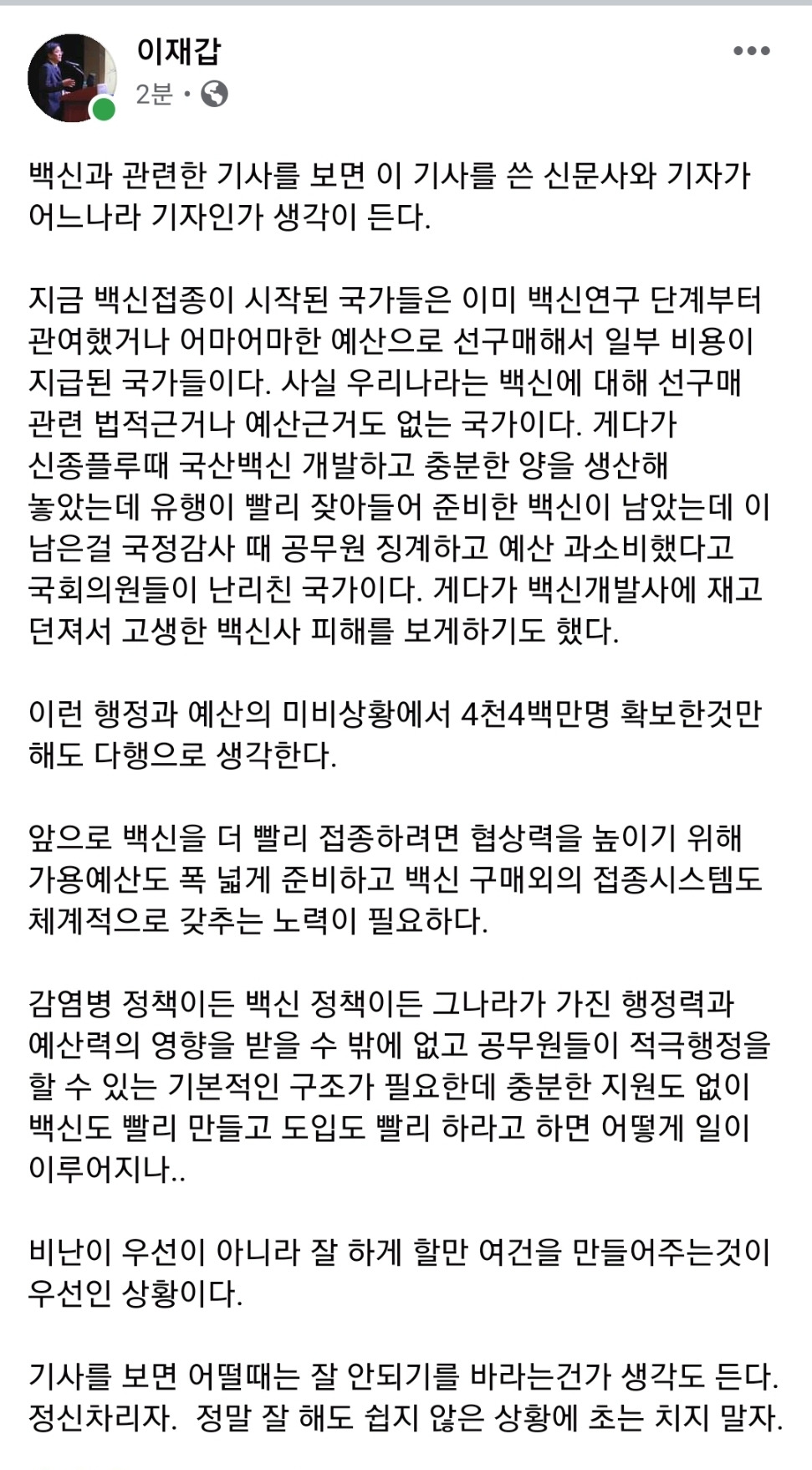 이미 백신 접종 시작한 국가들 다 지들이 만들어서 맞고 있나요? 논점을 잘 짚으셔야죠