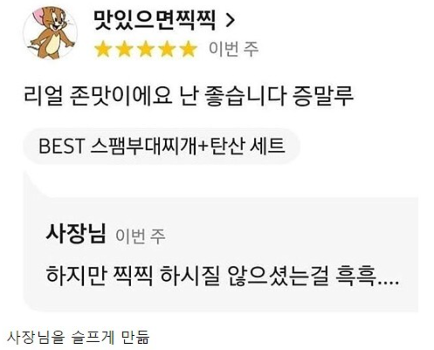 [유머] 리뷰에 슬퍼하는 사장님