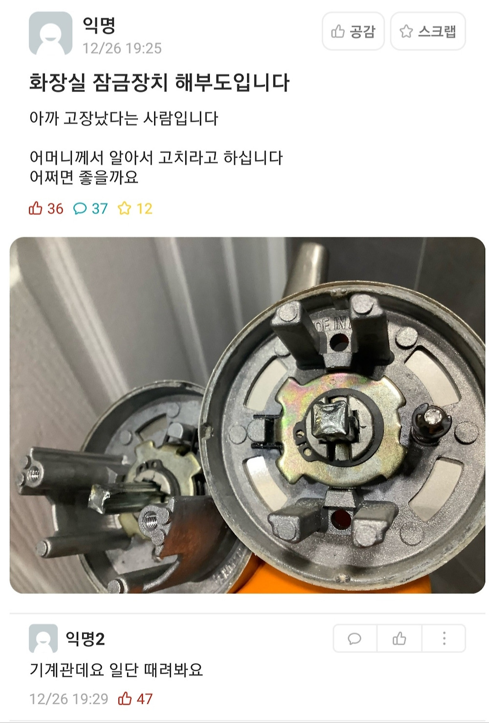 [유머] 화장실 잠금 고장났다는 사람인데요