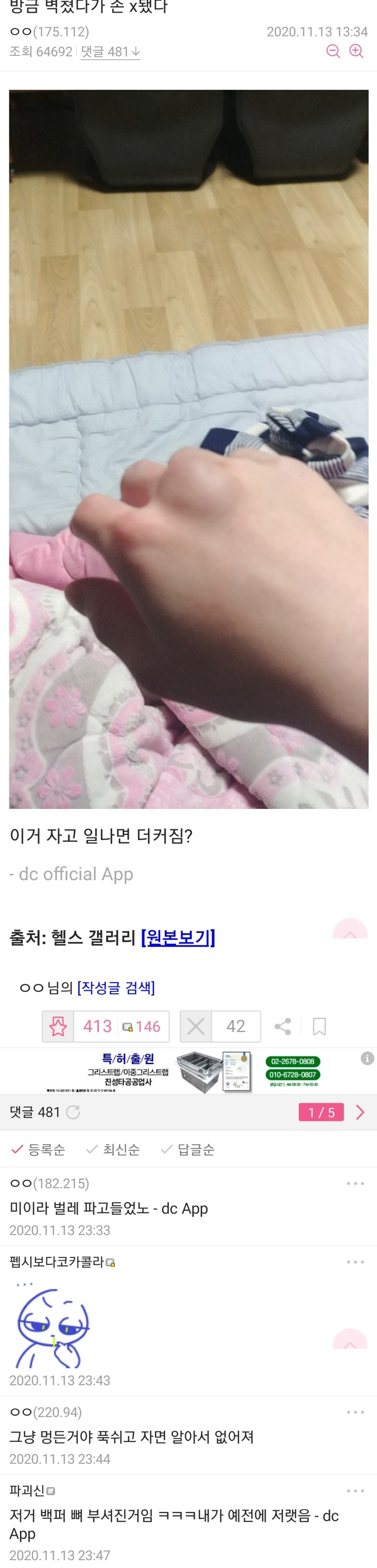 ㅎㄷㄷ 근데 저렇게 아프면서도 글올릴 셍각은 왜한거지