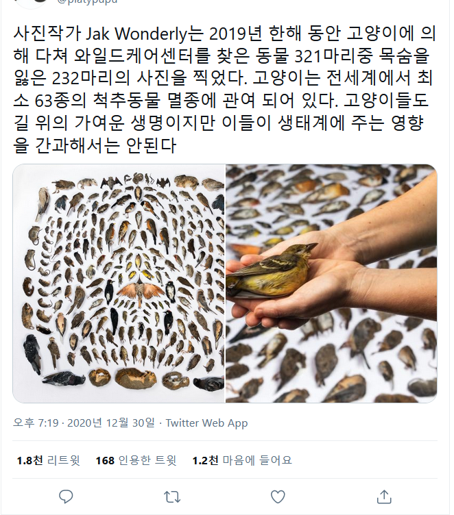 [유머] 고양이한테 죽은 동물들로 만든 작품