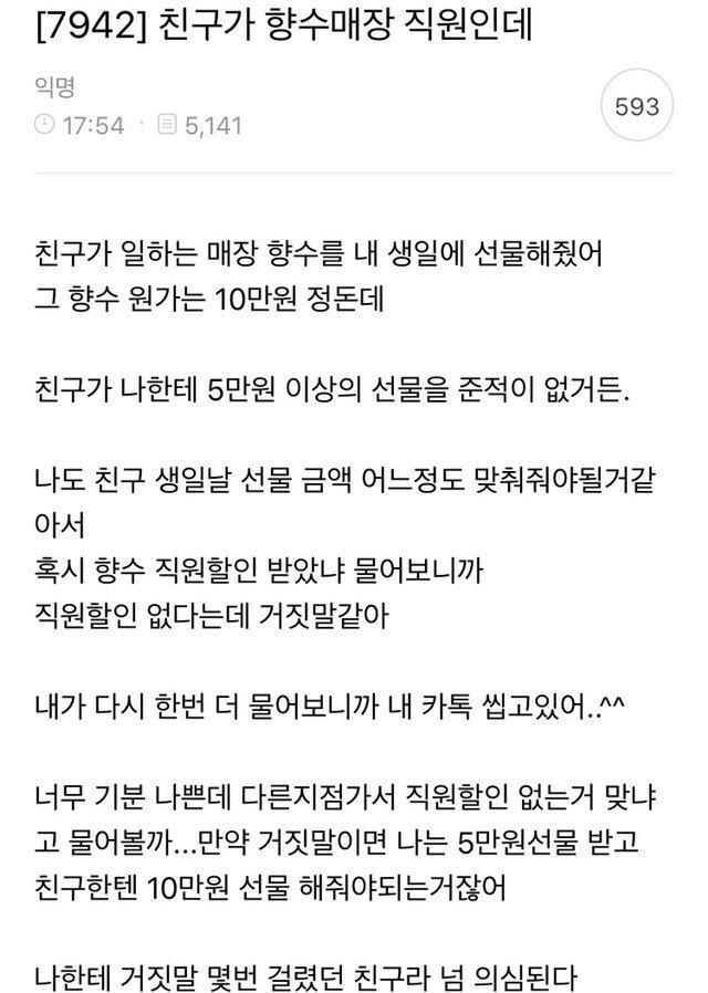 아니 설사 직원할인있었어도 그건 니 친구 능력이니까 걍 10만원짜리라 생각해야지