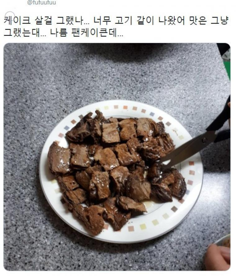 저게 고기고 케이크라고....?