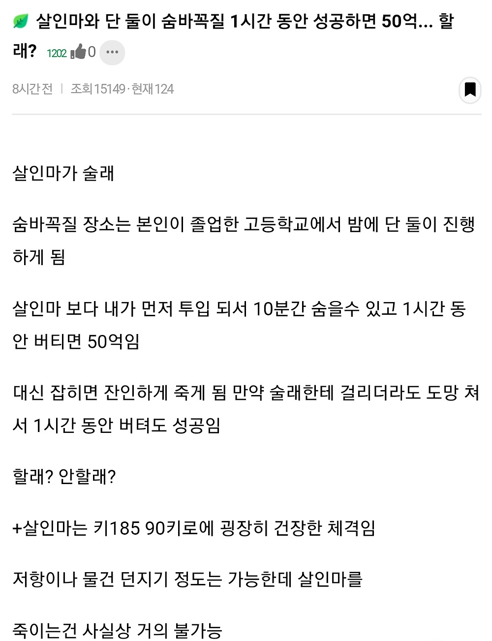 살인마는 나를잡아서죽여야 50억을받는거면안할래..