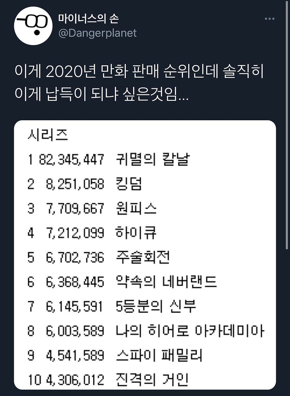 귀칼 인기는 좀 이해 안가긴함. 그냥저냥 평작이던데...아무리 애니버프가 있었다곤하지만