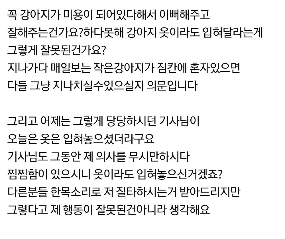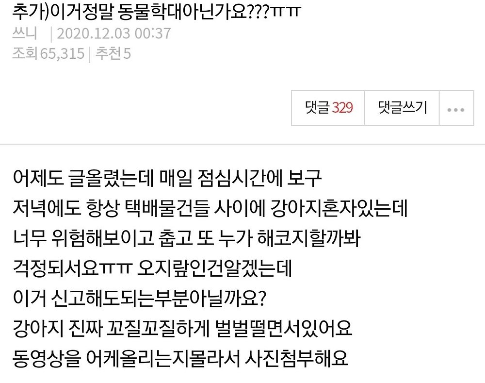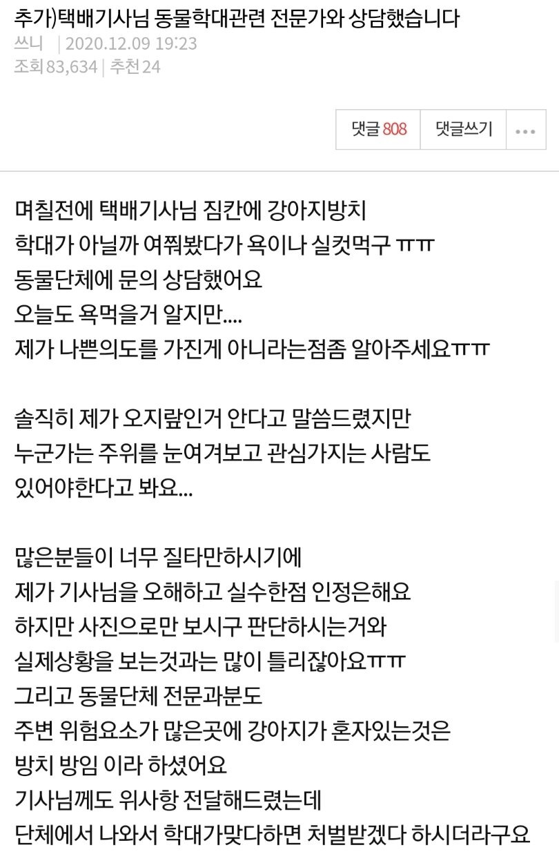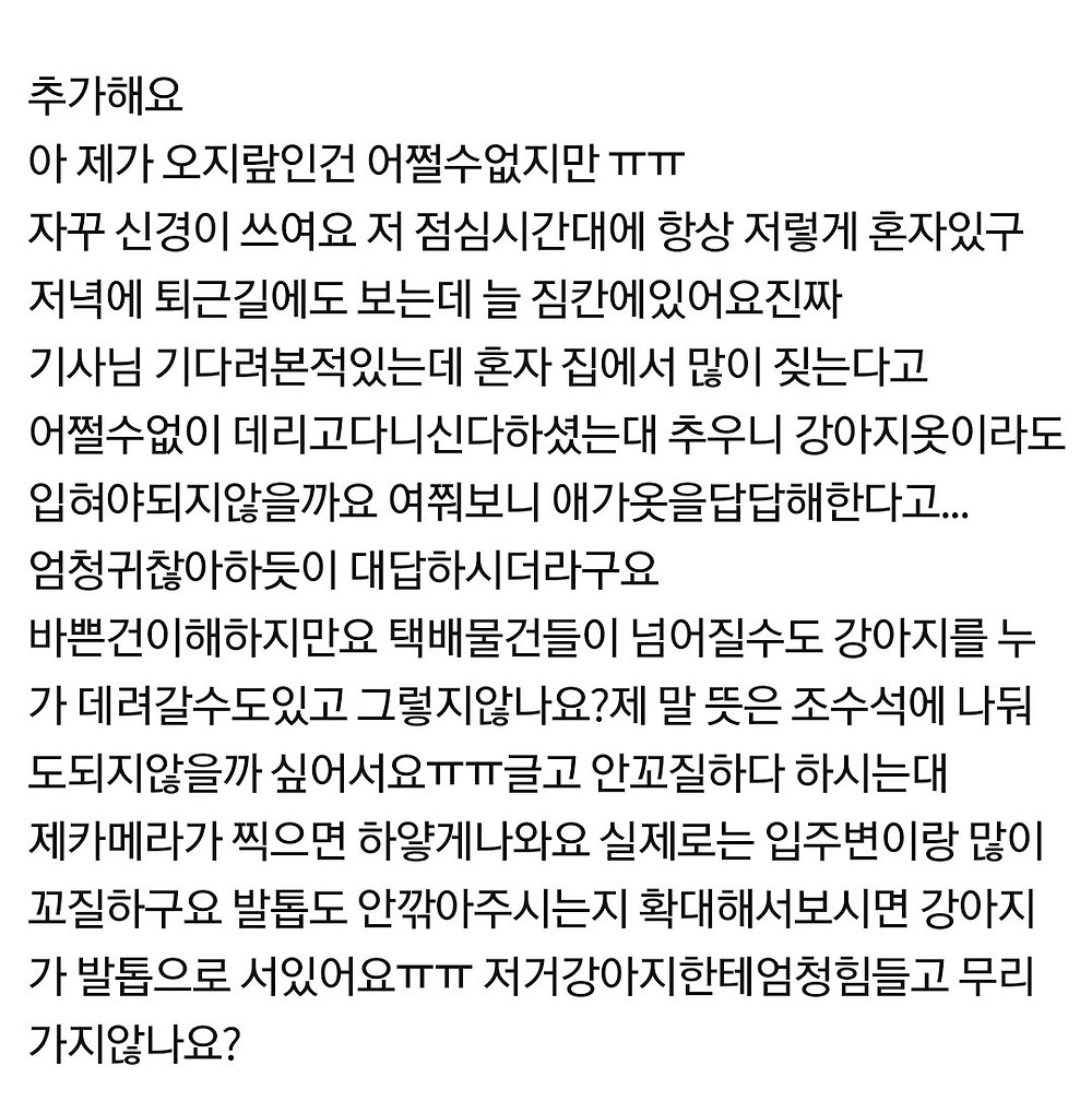 ㄴㄴ 저거 원래 택배기사한테 갑질하고 지랄하던년인데 안먹히니까 동물학대로 조작하려다가 동네주민증언으로 정작 본인만 박살남