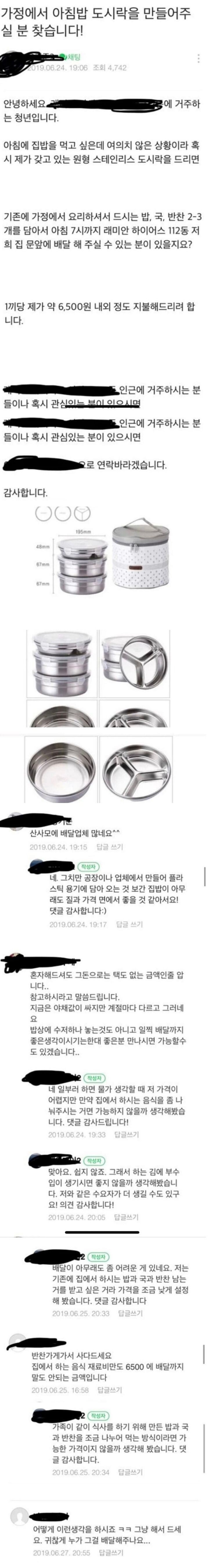 와 저 원형통에 아침7시 배달 ㅋㅋㅋ6500원ㅋㅋㅋㅋ