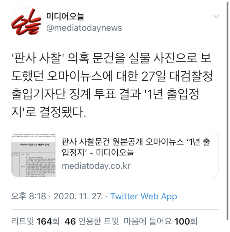 [유머] 꼴값) 오마뉴에 대검 출입기자단 징계 투표 결과