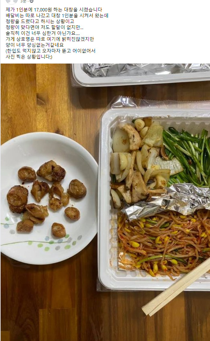 원래 대창,막창같은거시키면 ㄹㅇ양이얼마없긴하데 저건 선넘었지