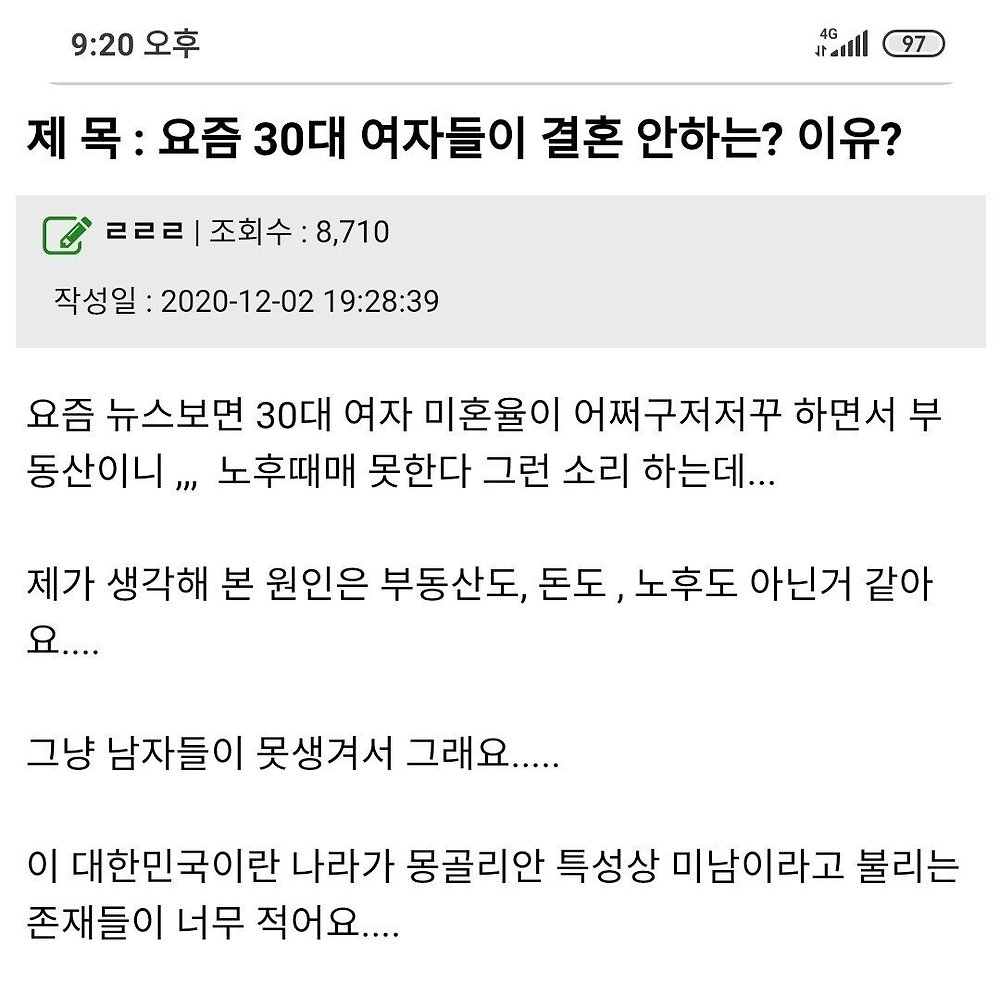 30대 "그냥" 여자이기만 해서 만날 남자가 없는 것이다.
