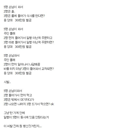 5인이하 집합금지 취지는 알겠는데 존나 개븅신 같음