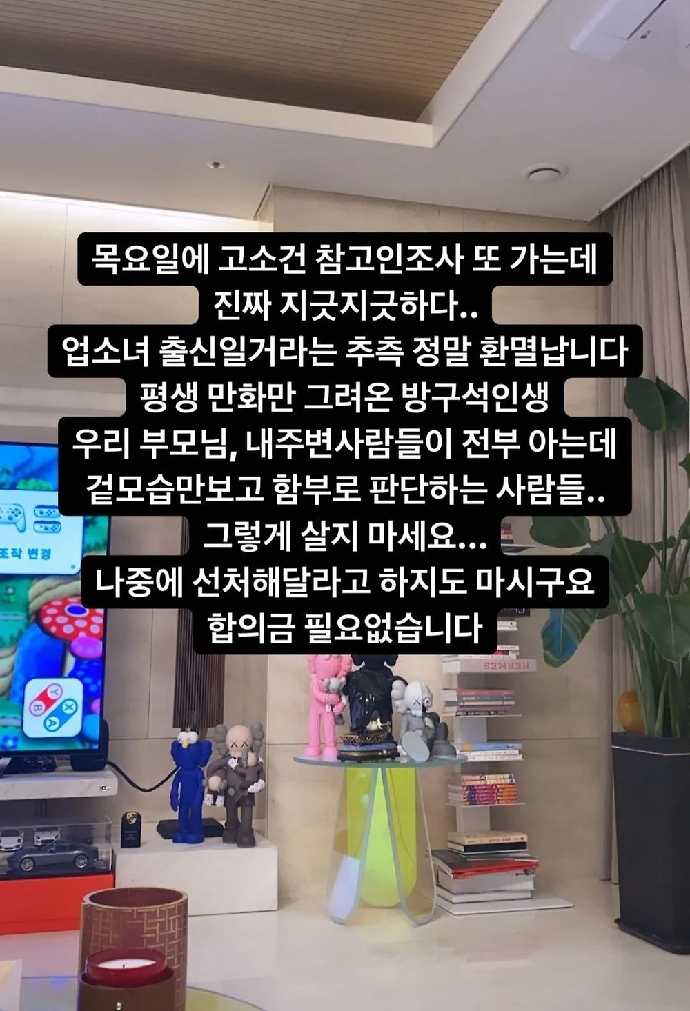 단순 비방은 참고 넘길 수 있다 해도 업소녀라면서 허위사실 유포하면 바로 고소 들어가는거지 선 넘은 악플러에게는 법의 심판만이 있을뿐