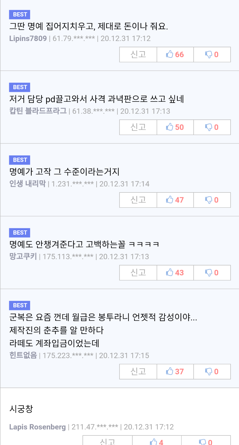 명예 꼬라지 ㅋㅋ