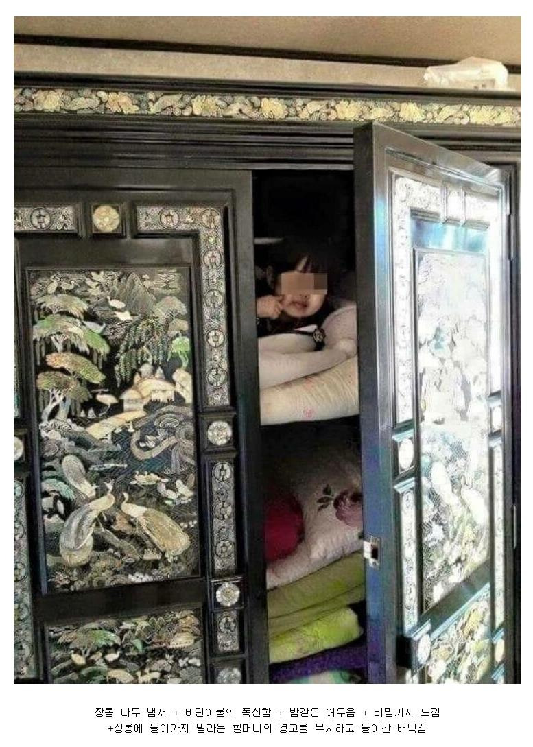 ㄹㅇ 장롱안에 들어가서 이불 사이에 있으면 그 포근함이 있었지.