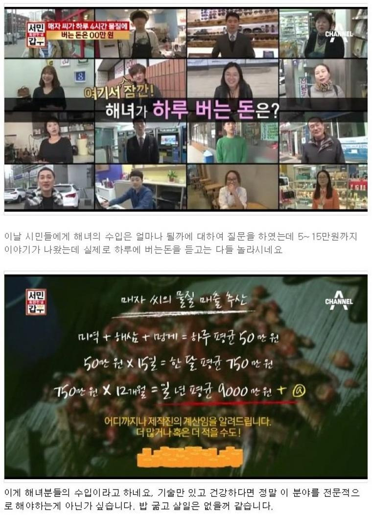 해녀가 산소탱크 매고 들어가면 불법인가 저정도 수익이면 산소 비용 빼고도 남을것 같은데