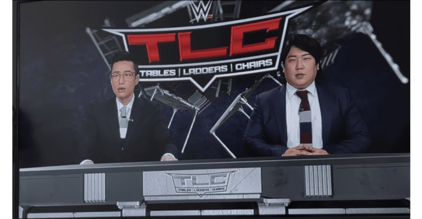 WWE 경기에서 나온 장면들 그리고 이 경기를 라이브로 보며 중계한 국내 중계진 반응